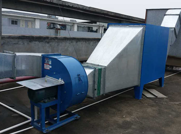 含塵氣體由風(fēng)機(jī)提供動(dòng)力,正壓或負(fù)壓進(jìn)入塔體,由于活性炭固體表面上存在著未平衡和未飽和的分子引力或化學(xué)健力,因此當(dāng)此固體表面與氣體接觸時(shí),就能吸引氣體分子,使其濃聚并保持在固體表面,污染物質(zhì)從而被吸附,廢氣經(jīng)過濾器后,進(jìn)入設(shè)備排塵系統(tǒng),凈化氣體高空達(dá)標(biāo)排放。