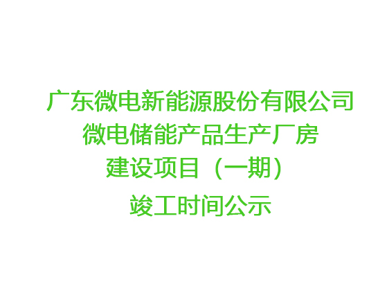 廣東微電新能源股份有限公司微電儲(chǔ)能產(chǎn)品生產(chǎn)廠(chǎng)房建設(shè)項(xiàng)目(一期)竣工時(shí)間公示