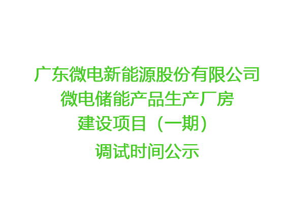 廣東微電新能源股份有限公司微電儲(chǔ)能產(chǎn)品生產(chǎn)廠(chǎng)房建設(shè)項(xiàng)目(一期)調(diào)試時(shí)間公示